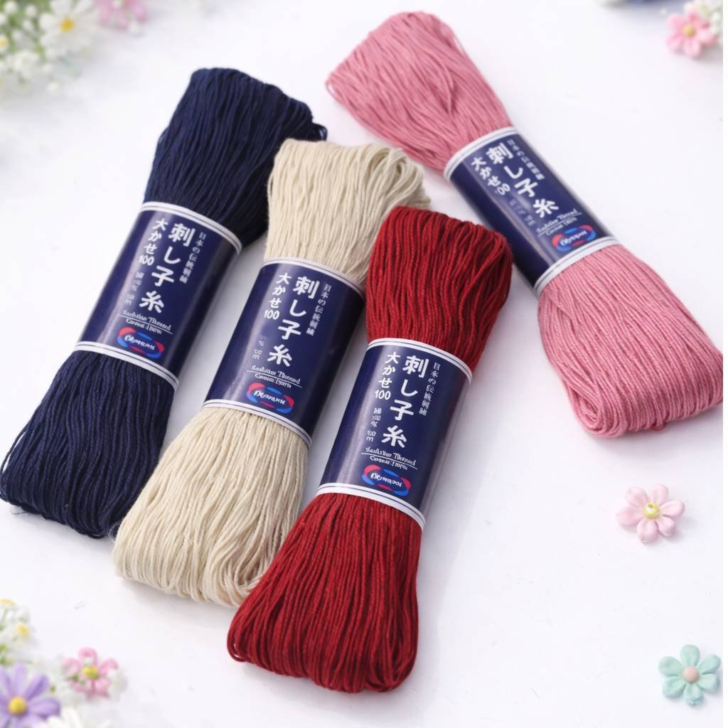 Unlike standard embroidery floss, Olympus sashiko thread is a non-divisible, matte cotton thread. It is tightly twisted to prevent fraying and tangling, allowing it to glide effortlessly through heavy fabrics like indigo cotton, linen, and denim. The 100-meter size is economical and ensures color consistency across larger quilt blocks or garments.